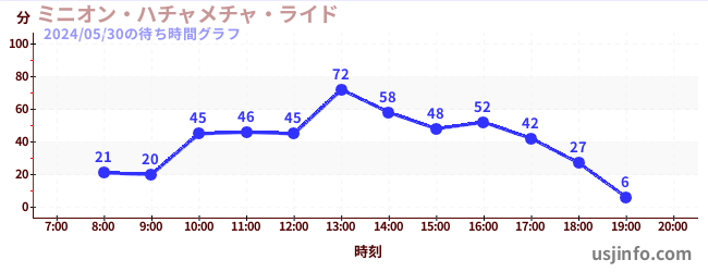 • ミニオン・ハチャメチャ・ライド$B$N(B2024年05月30日の待ち時間