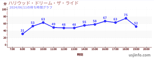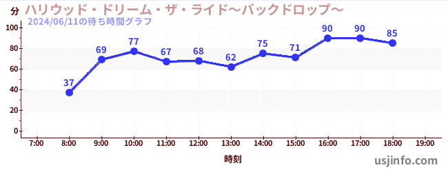 • ハリウッド・ドリーム・ザ・ライド〜バックドロップ〜$B$N(B2024年06月11日の待ち時間