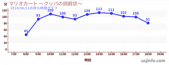• マリオカート ~クッパの挑戦状~$B$N(B2024年06月11日の待ち時間