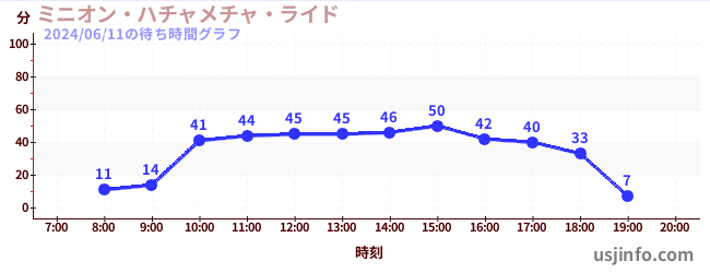• ミニオン・ハチャメチャ・ライド$B$N(B2024年06月11日の待ち時間