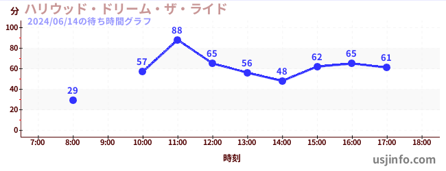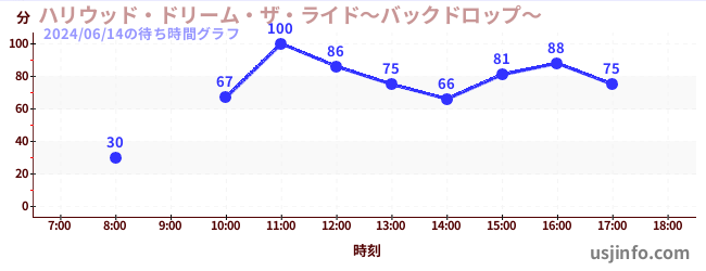 • ハリウッド・ドリーム・ザ・ライド〜バックドロップ〜$B$N(B2024年06月14日の待ち時間