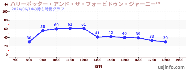 • ハリーポッター・アンド・ザ・フォービドゥン・ジャーニー™$B$N(B2024年06月14日の待ち時間