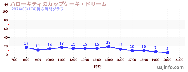 • ハローキティのカップケーキ・ドリーム$B$N(B2024年06月17日の待ち時間