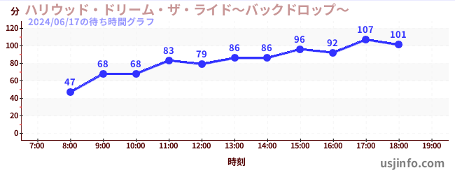 • ハリウッド・ドリーム・ザ・ライド〜バックドロップ〜$B$N(B2024年06月17日の待ち時間