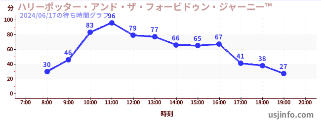 • ハリーポッター・アンド・ザ・フォービドゥン・ジャーニー™$B$N(B2024年06月17日の待ち時間