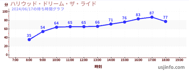 • ハリウッド・ドリーム・ザ・ライド$B$N(B2024年06月17日の待ち時間