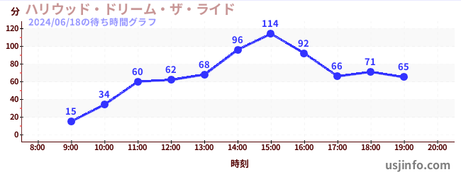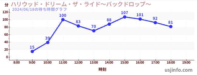 • ハリウッド・ドリーム・ザ・ライド〜バックドロップ〜$B$N(B2024年06月18日の待ち時間