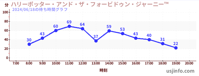 • ハリーポッター・アンド・ザ・フォービドゥン・ジャーニー™$B$N(B2024年06月18日の待ち時間