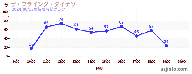 • ザ・フライング・ダイナソー$B$N(B2024年06月18日の待ち時間