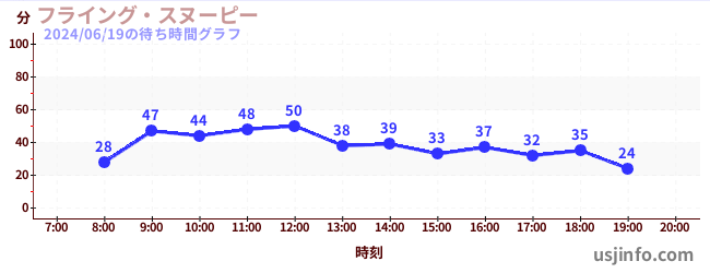 • フライング・スヌーピー$B$N(B2024年06月19日の待ち時間