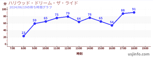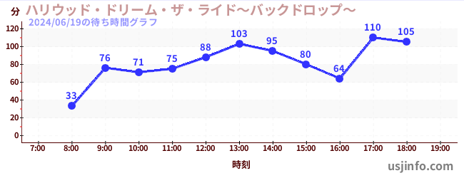 • ハリウッド・ドリーム・ザ・ライド〜バックドロップ〜$B$N(B2024年06月19日の待ち時間