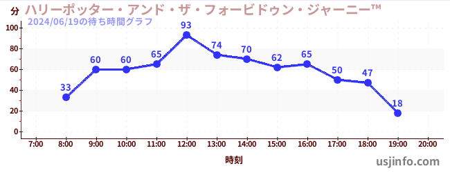 • ハリーポッター・アンド・ザ・フォービドゥン・ジャーニー™$B$N(B2024年06月19日の待ち時間