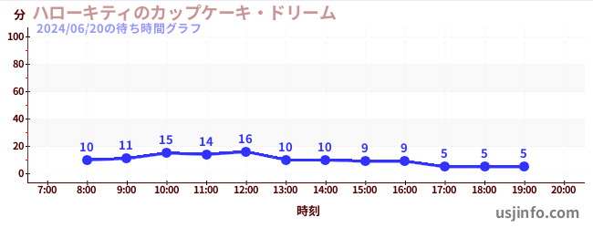 • ハローキティのカップケーキ・ドリーム$B$N(B2024年06月20日の待ち時間