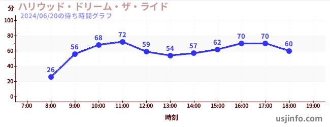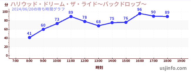 • ハリウッド・ドリーム・ザ・ライド〜バックドロップ〜$B$N(B2024年06月20日の待ち時間