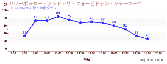 • ハリーポッター・アンド・ザ・フォービドゥン・ジャーニー™$B$N(B2024年06月20日の待ち時間