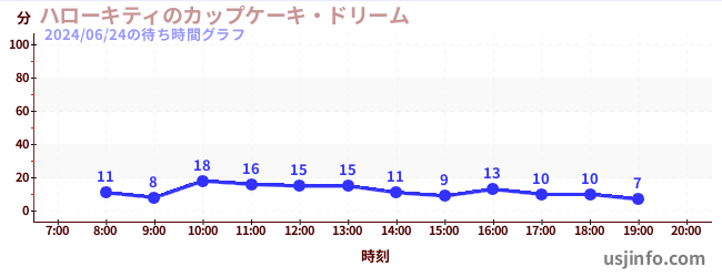 • ハローキティのカップケーキ・ドリーム$B$N(B2024年06月24日の待ち時間