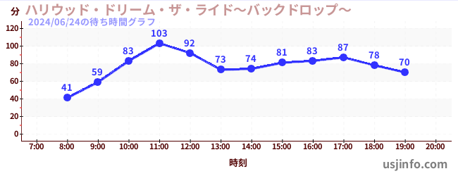 • ハリウッド・ドリーム・ザ・ライド〜バックドロップ〜$B$N(B2024年06月24日の待ち時間