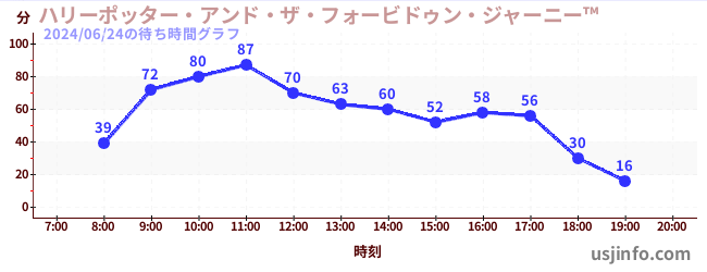 • ハリーポッター・アンド・ザ・フォービドゥン・ジャーニー™$B$N(B2024年06月24日の待ち時間