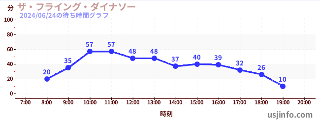 • ザ・フライング・ダイナソー$B$N(B2024年06月24日の待ち時間