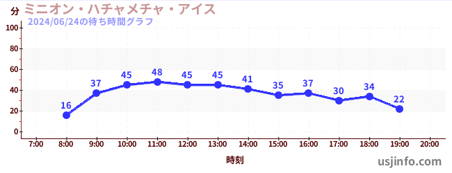 • ミニオン・ハチャメチャ・アイス$B$N(B2024年06月24日の待ち時間