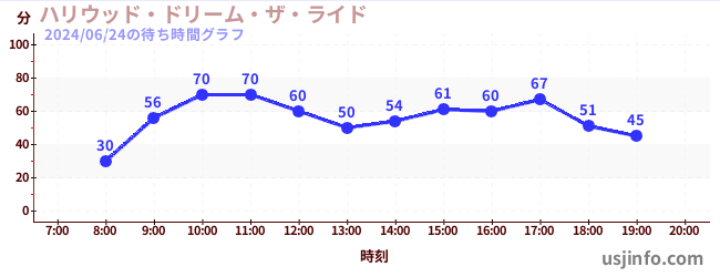 • ハリウッド・ドリーム・ザ・ライド$B$N(B2024年06月24日の待ち時間