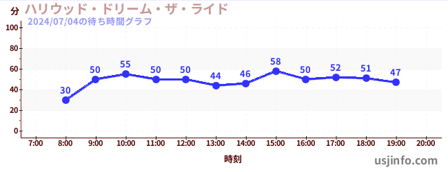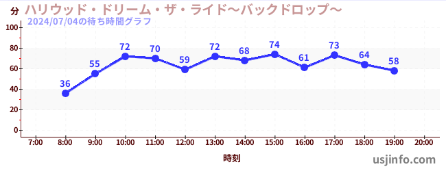 • ハリウッド・ドリーム・ザ・ライド〜バックドロップ〜$B$N(B2024年07月04日の待ち時間