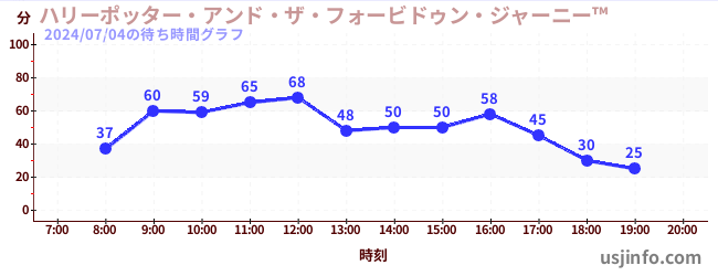 • ハリーポッター・アンド・ザ・フォービドゥン・ジャーニー™$B$N(B2024年07月04日の待ち時間