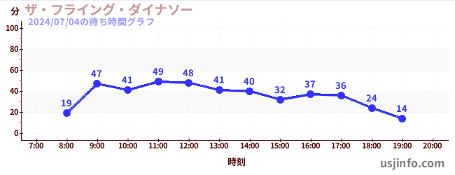 • ザ・フライング・ダイナソー$B$N(B2024年07月04日の待ち時間