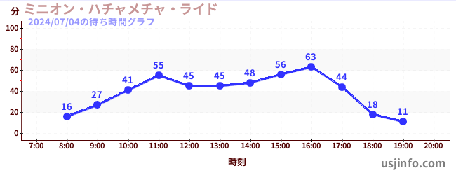 • ミニオン・ハチャメチャ・ライド$B$N(B2024年07月04日の待ち時間