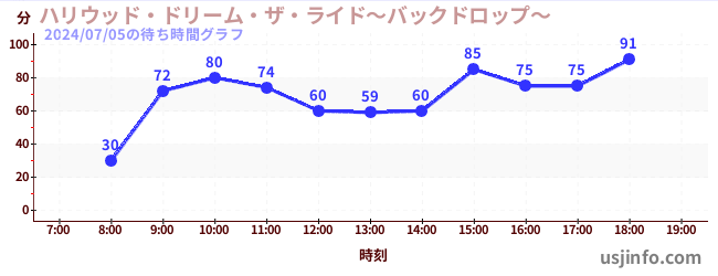 • ハリウッド・ドリーム・ザ・ライド〜バックドロップ〜$B$N(B2024年07月05日の待ち時間