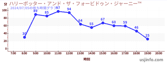 • ハリーポッター・アンド・ザ・フォービドゥン・ジャーニー™$B$N(B2024年07月05日の待ち時間