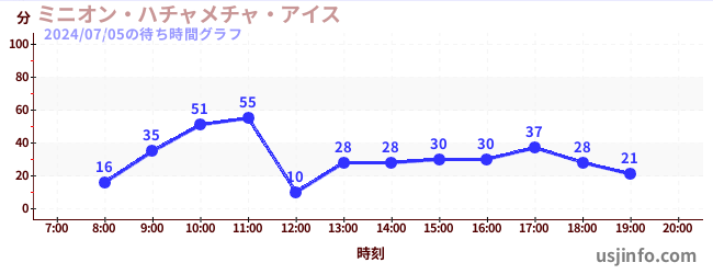 • ミニオン・ハチャメチャ・アイス$B$N(B2024年07月05日の待ち時間