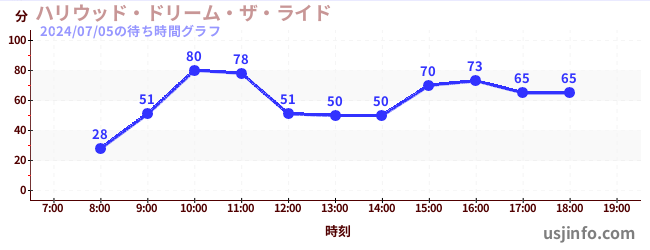 • ハリウッド・ドリーム・ザ・ライド$B$N(B2024年07月05日の待ち時間