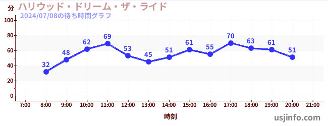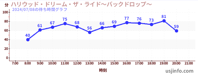 • ハリウッド・ドリーム・ザ・ライド〜バックドロップ〜$B$N(B2024年07月08日の待ち時間