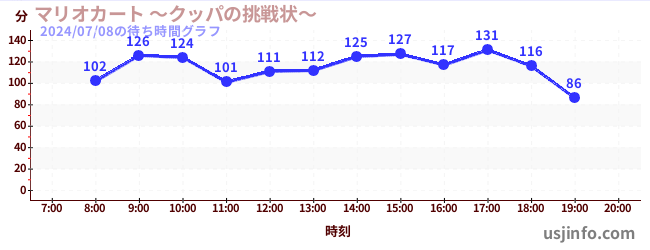 • マリオカート ~クッパの挑戦状~$B$N(B2024年07月08日の待ち時間