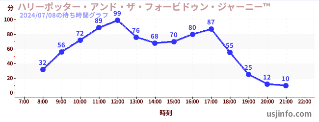 • ハリーポッター・アンド・ザ・フォービドゥン・ジャーニー™$B$N(B2024年07月08日の待ち時間