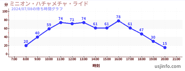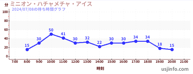 • ミニオン・ハチャメチャ・ライド$B$N(B2024年07月08日の待ち時間