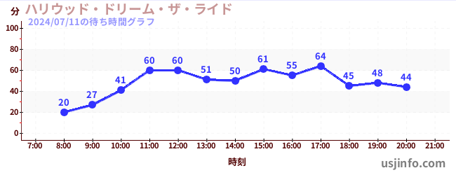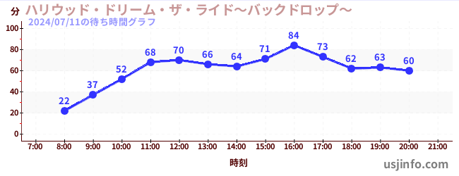 • ハリウッド・ドリーム・ザ・ライド〜バックドロップ〜$B$N(B2024年07月11日の待ち時間