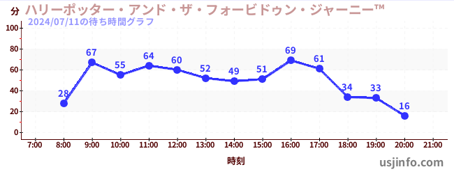 • ハリーポッター・アンド・ザ・フォービドゥン・ジャーニー™$B$N(B2024年07月11日の待ち時間