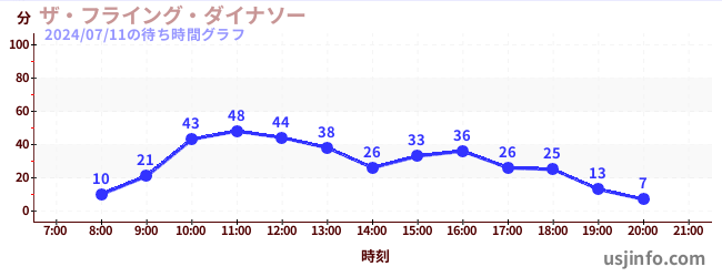 • ザ・フライング・ダイナソー$B$N(B2024年07月11日の待ち時間