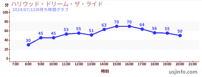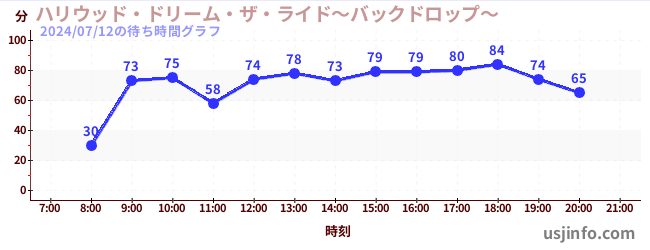 • ハリウッド・ドリーム・ザ・ライド〜バックドロップ〜$B$N(B2024年07月12日の待ち時間