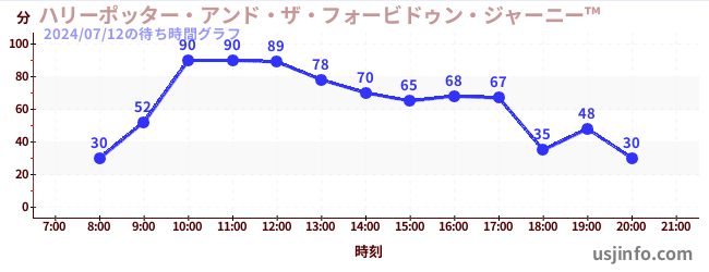 • ハリーポッター・アンド・ザ・フォービドゥン・ジャーニー™$B$N(B2024年07月12日の待ち時間