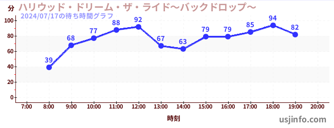 • ハリウッド・ドリーム・ザ・ライド〜バックドロップ〜$B$N(B2024年07月17日の待ち時間
