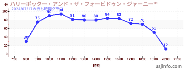 • ハリーポッター・アンド・ザ・フォービドゥン・ジャーニー™$B$N(B2024年07月17日の待ち時間