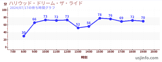 • ハリウッド・ドリーム・ザ・ライド$B$N(B2024年07月17日の待ち時間