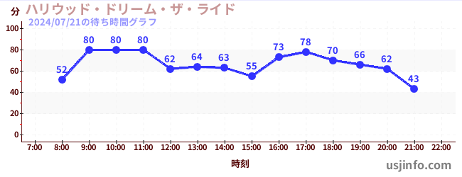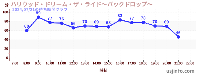 • ハリウッド・ドリーム・ザ・ライド〜バックドロップ〜$B$N(B2024年07月21日の待ち時間