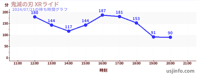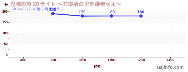 • 鬼滅の刃 XRライド ~刀鍛冶の里を疾走せよ~$B$N(B2024年07月21日の待ち時間