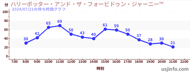 • ハリーポッター・アンド・ザ・フォービドゥン・ジャーニー™$B$N(B2024年07月21日の待ち時間