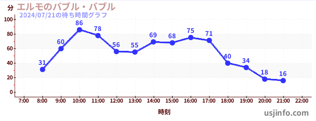 • エルモのバブル・バブル$B$N(B2024年07月21日の待ち時間
