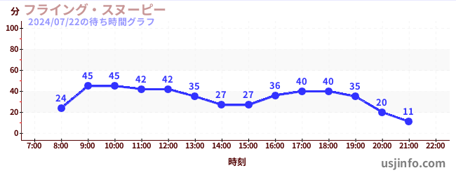 • フライング・スヌーピー$B$N(B2024年07月22日の待ち時間
